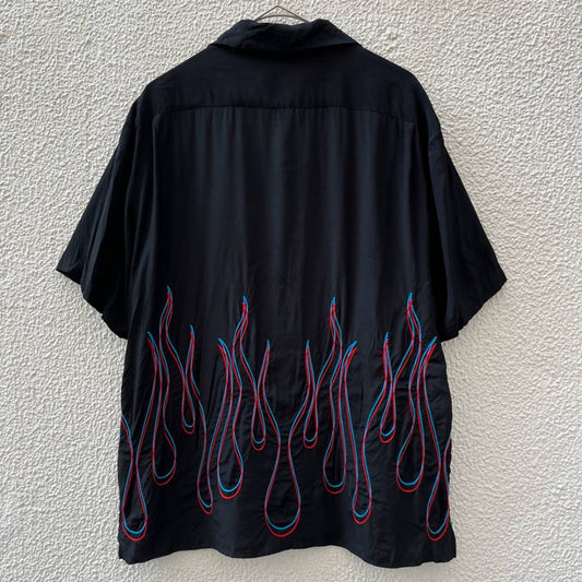 TAIN DOUBLE PUSH タインダブルプッシュ Lサイズ 柄シャツ 半袖 シャツ 開襟 ファイヤー 刺繍 ブラック通常価格 ¥8,730通常価格単価 あたり-