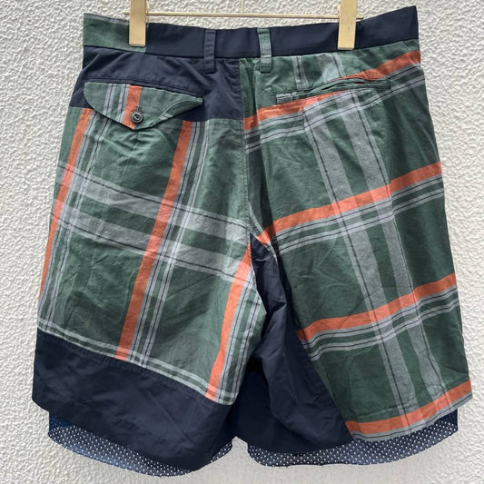kolor カラー サイズ1 チェック クロスレイヤー ショーツ ハーフパンツ グリーン